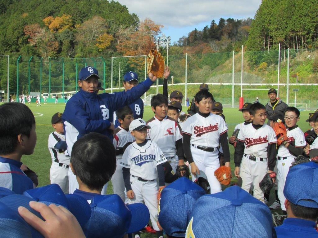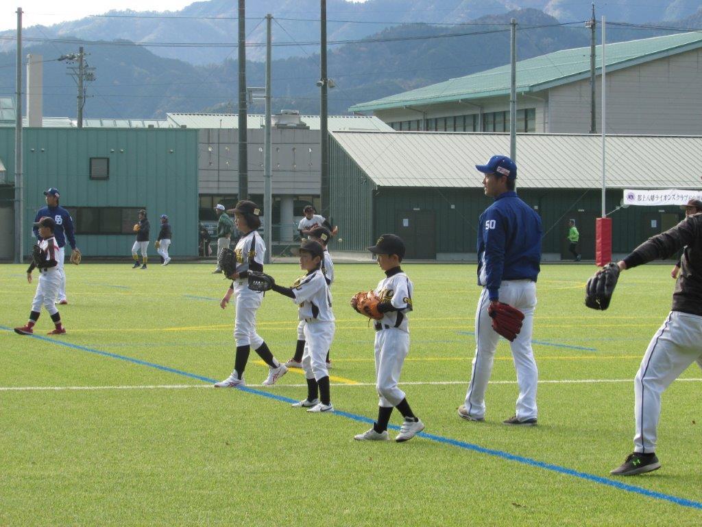 郡上八幡LC結成60周年記念事業としてプロ野球チーム「中日ドラゴンズ」から#9石川俊選手、#50清水達也選手、#31渡辺勝選手と、元中日ドラゴンズ亀澤選手、尾藤選手を講師としてお迎えし、郡上市内の野球チームに所属の子ども達を対象に野球教室」を開催しました。