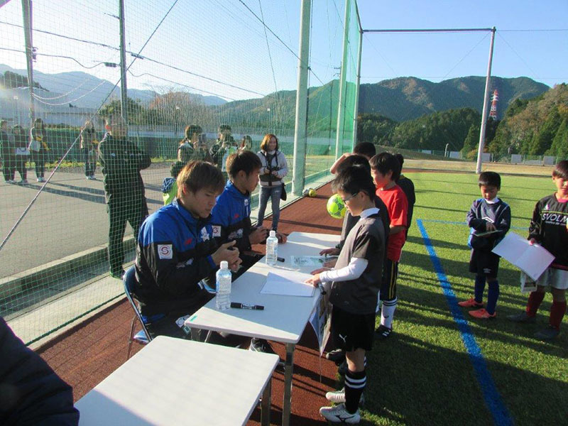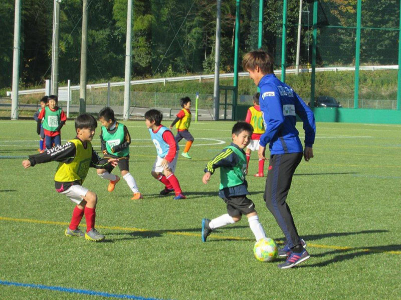 郡上市内小学3年生~6年生までの80名に対しサッカー教室を行いました。